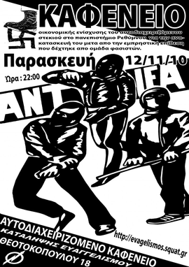 Kαφενείο οικονομικής ενίσχυσης στο Αυτοδιαχειριζόμενο Στέκι στο πανεπιστήμιο Ρεθύμνου για την ανακατασκευή του μετά απο την εμπρηστική επίθεση που δέχτηκε απο ομάδα φασιστών.