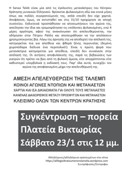 Αύριο - Σάββατο, 23/1 στις 12:00 Συγκέντρωση/Πορεία στη Βικτώρια