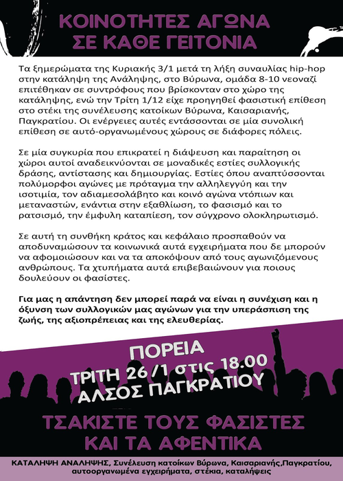 Κοινότητες αγώνα σε κάθε γειτονιά! Πορεία Τρίτη 26/1 6μμ Άλσος Παγκρατίου