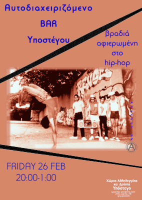-Παρασκευή 26/2, από ώρα 20.00: Αυτοοργανώμενο Μπάρ Υποστέγου.