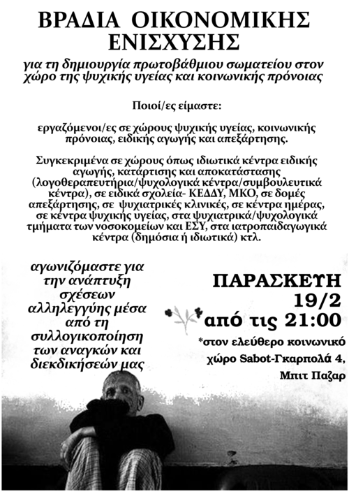 Βar κάλυψης εξόδων για δημιουργία σωματείου σε ψυχική υγεία/κοινωνική πρόνοια