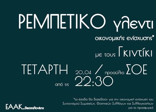 ΡΕΜΠΕΤΙΚΟ γλέντι οικονομικής ενίσχυσης του Συντονισμού Σωματείων, Φοιτητικών Συλλόγων και Συλλογικοτήτων για το ΠΡΟΣΦΥΓΙΚΟ