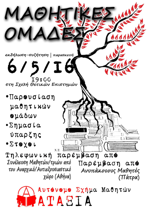 Εκδήλωση - συζήτηση την Παρασκευή 6 Μάη στις 19:00 στη Σχολή Θετικών Επιστημών με θέμα τις μαθητικές ομάδες: