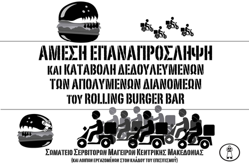 Παρέμβαση του σωματείου σερβιτόρων μαγείρων κεντρικής Μακεδονίας-Θεσσαλονίκης και αλληλέγγυων στο Rolling Burger Bar στην καμάρα Θεσσαλονίκης.
