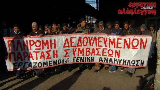 Έτσι, πάνω από 160 εργαζόμενοι από Πακιστάν, Ινδία, Μπαγκλαντές, Αλβανία αλλά και Έλληνες, που είχαν μείνει απλήρωτοι επί μήνες - σε κάποιους από αυτούς οφείλονταν δεδουλευμένα ύψους 15.000€ - οργανώθηκαν συλλογικά με την συγκρότηση επιτροπής εργαζομένων. Με γενικές συνελεύσεις που είχαν μαζική συμμετοχή, αποφάσισαν ομόφωνα να αντιδράσουν στην υποτίμηση της εργατικής τους δύναμης και της ίδιας τους της ζωής. Διεκδικούσαν το αυτονόητο : το στοιχειώδες δικαίωμα στην επιβίωση και την πληρωμή της μισθωτής τους εργασίας, ασκώντας τη νομική του μορφοποίηση, το δικαίωμα στην απεργία, κατάκτηση και καρπό αιματηρών αγώνων, κάποτε απαγορευμένο.
