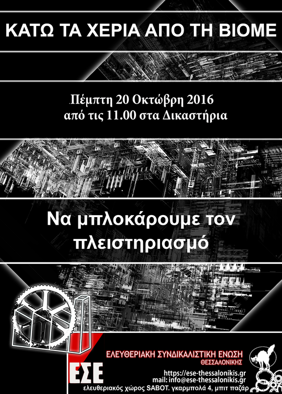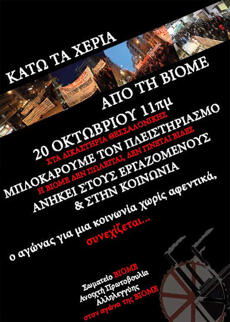 ΟΛΟΙ/ΟΛΕΣ ΠΕΜΠΤΗ 20/10/2016 11 π.μ. στα δικαστήρια για να υπερασπιστούμε τη ΒΙΟ.ΜΕ.