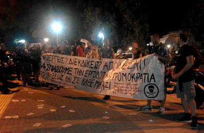 Ούτε στο "B-BLUZ", ούτε και πουθενά, καμία ειρήνη με τα αφεντικά. [Συγκέντρωση αλληλεγγύης / Δικαστήρια Ευελπίδων 17/10] Την Δευτέρα 17 Οκτώβρη στα δικαστήρια της Ευελπίδων θα εκδικαστεί η υπόθεση των 2 απολυμένων εργαζομένων από την καφετέρια/μπάρ"B-BLUZ" στο Χαλάνδρι. Οι δύο εργαζόμενοι απολύθηκαν εκδικητικά στις 13 Μαίου 2016. Έίχαν μόλις προηγηθεί: η διεκδίκηση του δώρου Πάσχα και της πλήρους ασφάλισης - δήλωσης της εργασίας τους αφού μέχρι τότε δηλώνονταν τα μισά ένσημα και λιγότερα, η συμμετοχή τους στην 48ωρη απεργία ενάντια στην ψήφιση του ασφαλιστικού (7 & 8 Μαίου 2016). Επίσης, οι δύο εργαζόμενοι είναι μέλη του "Σωματείου Σερβιτόρων Μαγείρων και λοιπών εργαζομένων του κλάδου του επισιτισμού". ΝΙΚΗ ΣΤΟΝ ΑΓΩΝΑ ΤΩΝ 2 ΑΠΟΛΥΜΕΝΩΝ ΤΟΥ "B-BLUZ" ΚΑΤΑΒΟΛΗ ΟΛΩΝ ΤΩΝ ΔΕΔΟΥΛΕΥΜΕΝΩΝ ΑΜΕΣΗ ΑΝΑΚΛΗΣΗ ΤΩΝ ΕΚΔΙΚΗΤΙΚΩΝ ΑΠΟΛΥΣΕΩΝ ΚΑΝΕΝΑΣ ΜΟΝΟΣ ΑΠΕΝΑΝΤΙ ΣΤΗΝ ΕΡΓΟΔΟΤΙΚΗ ΤΡΟΜΟΚΡΑΤΙΑ ΣΥΓΚΕΝΤΡΩΣΗ ΑΛΛΗΛΕΓΓΥΗΣ Δευτέρα 17 Οκτώβρη, Δικαστήρια Ευελπίδων ώρα 09:00 / κτίριο 9 / αίθουσα 10 Συντονισμός συλλογικοτήτων - καταλήψεων - συνελεύσεων στα βορειοανατολικά προάστια [ Ανοιχτή συνέλευση κατοίκων Αγίας Παρασκευής / σε τροχιά σύγκρουσης / ελευθεριακή συλλογικότητα διαπασών / Κατάληψη Έπαυλης Κουβέλου ]