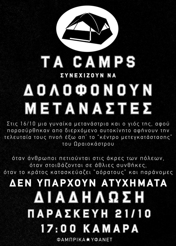 Friday at 17.00 in Kamara demonstration against closed camps away from the cities and against borders.