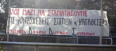 Σε μία περίοδο γενικευμένης οικονομικής αλλά και ανθρωπιστικής κρίσης, τη στιγμή που καταπατώνται εργατικά δικαιώματα και κεκτημένα χρόνων, που μισθοί και συντάξεις μειώνονται με ραγδαίους ρυθμούς ενώ τα ποσοστά της ανεργίας αγγίζουν κόκκινο, που το μεγαλύτερο μέρος του κοινωνικού συνόλου ζει στα όρια της φτώχειας και της εξαθλίωσης, που χιλιάδες ανθρώπων στοιβάζονται σε κέντρα κράτησης - «φιλοξενίας» υπό άθλιες συνθήκες διαβίωσης, η κυβέρνηση ΣΥΡΙΖΑ-ΑΝΕΛ σε συνεργασία με τις τράπεζες και πάντα υπό την επιτήρηση των ευρωπαϊκών θεσμών, προχωράει σε πλειστηριασμούς α' κατοικίας,.