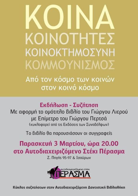 Βιβλιοπαρουσίαση: Κοινά, κοινότητες, κοινοκτημοσύνη, κομμουνισμός