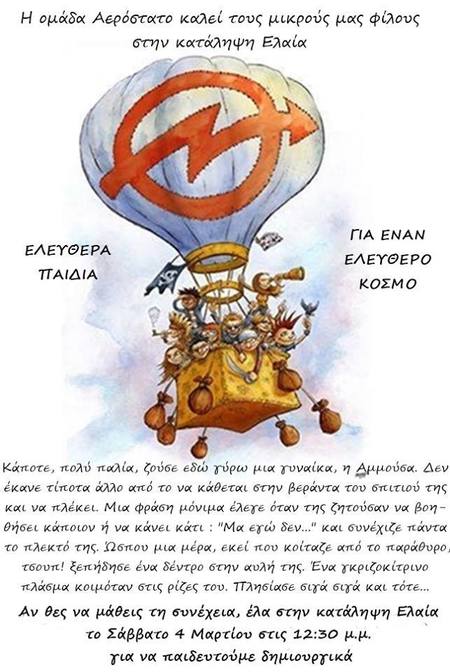 Αν θες να μάθεις τη συνέχεια , έλα στην κατάληψη Ελαία το Σάββατο 4 Μαρτίου στις 12.30 μμ για να παιδευτούμε δημιουργικά