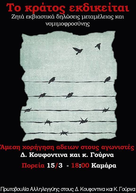 ΑΜΕΣΗ ΧΟΡΗΓΗΣΗ ΑΔΕΙΩΝ ΣΤΟΝ ΑΝΑΡΧΙΚΟ ΚΩΣΤΑ ΓΟΥΡΝΑ ΚΑΙ ΤΟΝ ΚΟΜΜΟΥΝΙΣΤΗ ΔΗΜΗΤΡΗ ΚΟΥΦΟΝΤΙΝΑ
