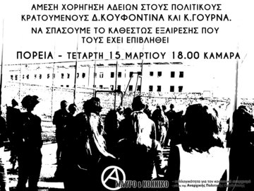 ΑΜΕΣΗ ΧΟΡΗΓΗΣΗ ΑΔΕΙΩΝ στους πολιτικούς κρατούμενους Δ. ΚΟΥΦΟΝΤΙΝΑ ΚΑΙ Κ. ΓΟΥΡΝΑ.