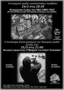 Σάββατο 25/03 στις 21.00 Η κατάληψη Ελαία φιλοξενεί τη θεατρική ομάδα σελίδα 231 στη θεατρική παράσταση : Η Βρομιά του Robert Schnelder