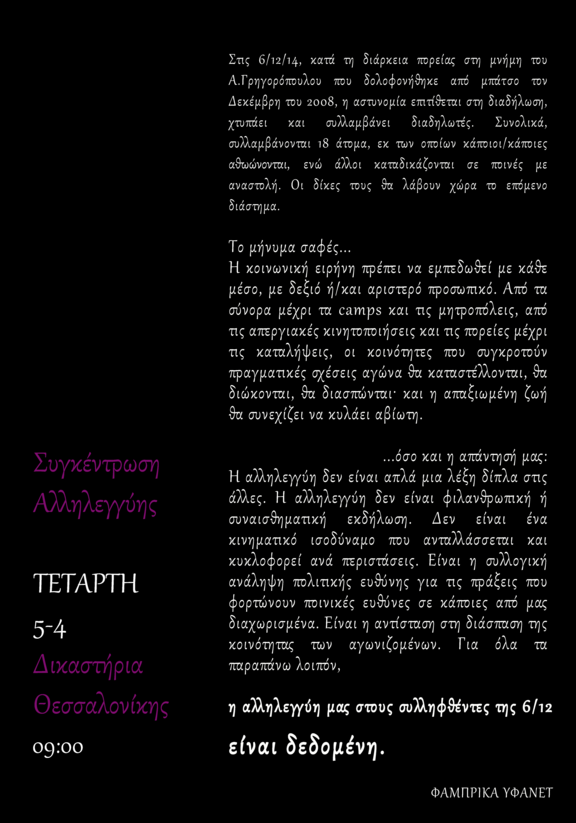 Αλληλεγγύη στους συλληφθέντες της 6|12|14