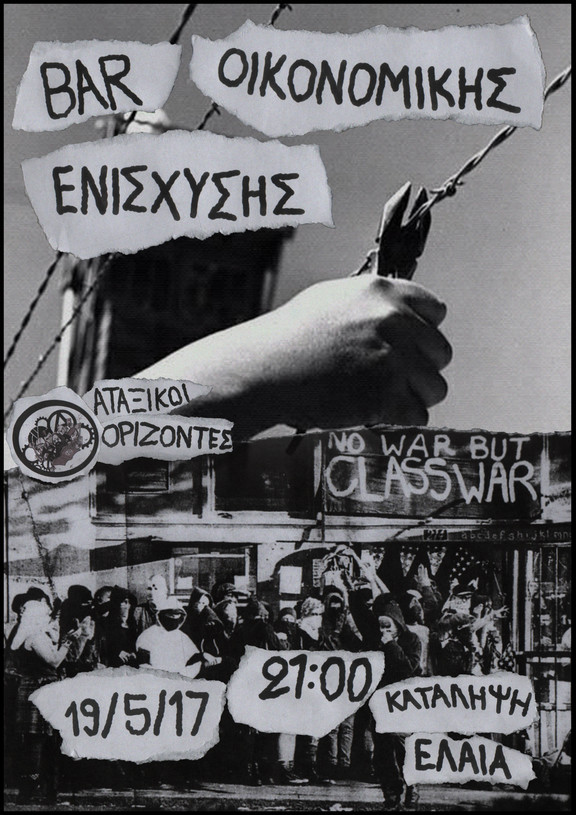 Bar Οικονομικής ενίσχυσης του κινηματικού βιβλιοπωλείου Αταξικοί Ορίζοντες την Παρασκευή 19 Μάη από τις 21:00 στην κατάληψη Ελαία.