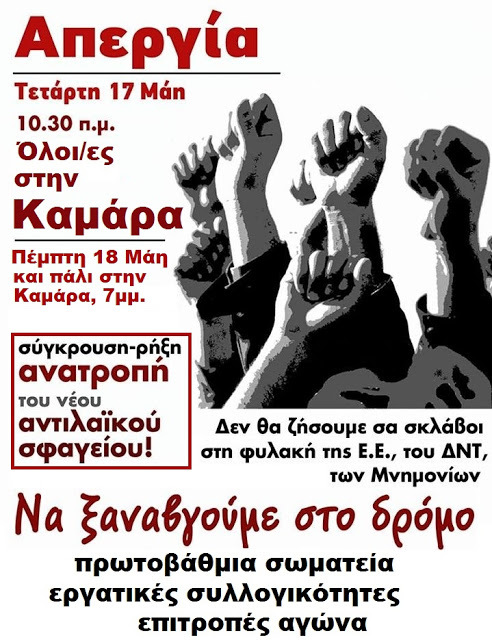 Κάλεσματα ενάντια στην ψήφιση των νέων μέτρων. 18/5/2017