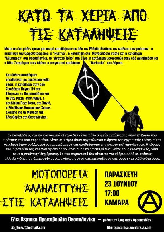 Μοτοπορεία αλληλεγγύης στις καταλήψεις 23/6 17.00 Καμάρα