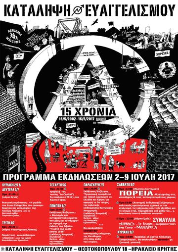 Κυριακή 9/7/17 -ώρα:18:00 -Προβολή 15 χρόνια Κατάληψη Ευαγγελισμού -Ακολουθεί φαγοπότι με ζωντανή μουσική