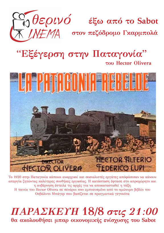Θερινή προβολή του "Εξέγερση στην Παταγονία" & bar οικονομικής ενίσχυσης