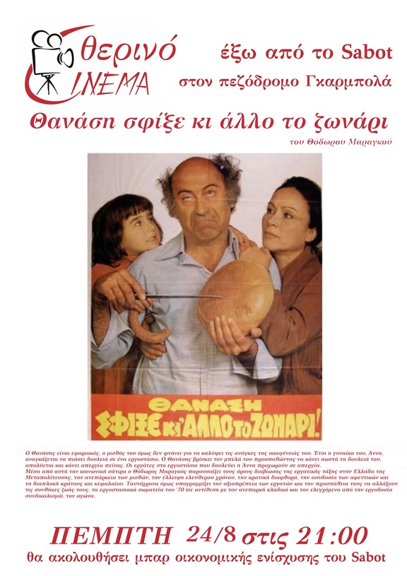 Θερινές προβολές έξω από το Sabot: Θανάση σφίξε κι άλλο το ζωνάρι