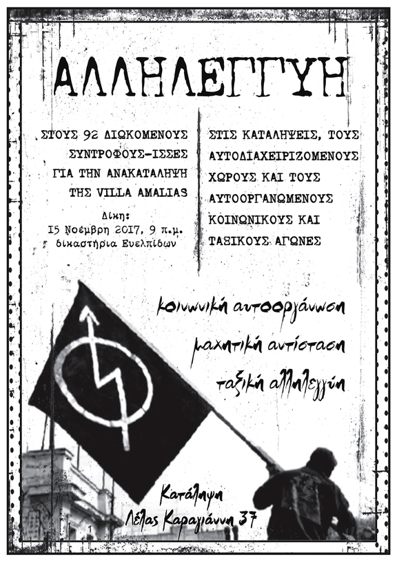 Αλληλεγγύη στους 92 κατηγορούμενους-ες για την ανακατάληψη της VillaAmalias που δικάζονται την Τετάρτη 15 Νοεμβρίου 2017, 9πμ, στα δικαστήρια της Ευελπίδων στο κτήριο 8.
