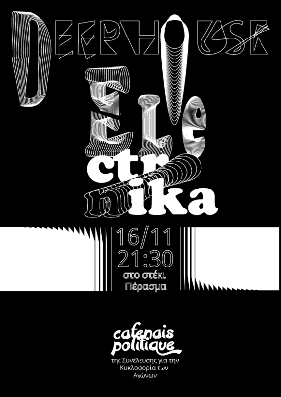 Χειμώνιασε. Τι καλύτερη εποχή για να επισκεφθείτε τον ζεστό, υπόγειο χώρο του Περάσματος στην Ζωοδόχου Πηγής και Ισαύρων και να ανεβάσετε την θερμοκρασία του σώματος σας χορεύοντας deep house electronica. Ή απλά μπορείτε να πιείτε την μπύρα/ποτό σας κουβεντιάζοντας υπό τους ηχους της ηλεκτρονικής μουσικής. Ενισχύοντας ταυτόχρονα το ταμείο αλληλοβοήθειας της συνέλευσης για την κυκλοφορία των αγώνων. Το 2ο πολιτικό καφενείο της σεζόν είναι γεγονός και θα πραγματοποιηθει την Πέμπτη 16/11, παραμονή Αγίου Πολυτεχνείου. Σας περιμένουμε από τις 21:30 κι έπειτα.