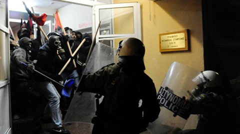 Ακολουθεί η επίθεση των ΜΑΤ και το σπάσιμο της πορείας με δακρυγόνα και κρότου λάμψης, συλλήψεις και προσαγωγές. Ο κόσμος της πορείας ανασυγκροτείται και πραγματοποιεί κατάληψη του εργατικού κέντρου η οποία με την σειρά της απαντάται από την αστυνομία…με λίγο ακόμα ξύλο συλλήψεις και προσαγωγές.