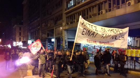 « Την ίδια ώρα που ξεκινούσε η πορεία στο κέντρο της Αθήνας, η γειτονιά των Εξαρχείων οχυρώθηκε με ισχυρά οδοφράγματα για την αποτροπή καταδρομικών επιθέσεων από τους λακέδες του νόμου και της τάξης. Στο διάστημα των ωρών που τα οδοφράγματα φρουρούνταν από ένα πλήθος οργανωμένων και άλλων συντρόφων, το κράτος για πρώτη φορά και παρά τις επίμονες προσπάθειές του δεν κατάφερε να μας αποσπάσει ούτε μέτρο εδάφους. Όταν πλέον η οργανωμένη περιφρούρηση είχε αποχωρήσει και ο κόσμος στους δρόμους είχε αραιώσει, οι ένστολοι βασανιστές πραγματοποίησαν εκδικητικές εισβολές, τραυματίζοντας και συλλαμβάνοντας ανθρώπους στον σωρό...