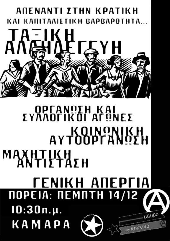 καλούμε όλους και όλες να κάνουμε την απεργία της 14ης Δεκέμβρη και πάλι επικίνδυνη για το χρεοκοπημένο σύστημα κράτος και κεφαλαίου.