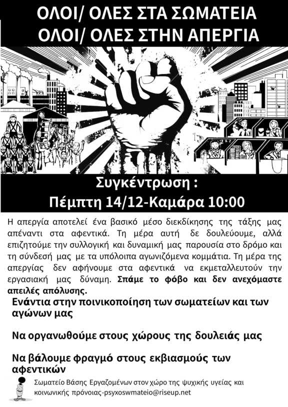 ΚΕΙΜΕΝΟ ΚΑΛΕΣΜΑ ΣΤΗΝ ΓΕΝΙΚΗ ΑΠΕΡΓΙΑ ΣΤΙΣ 14/12