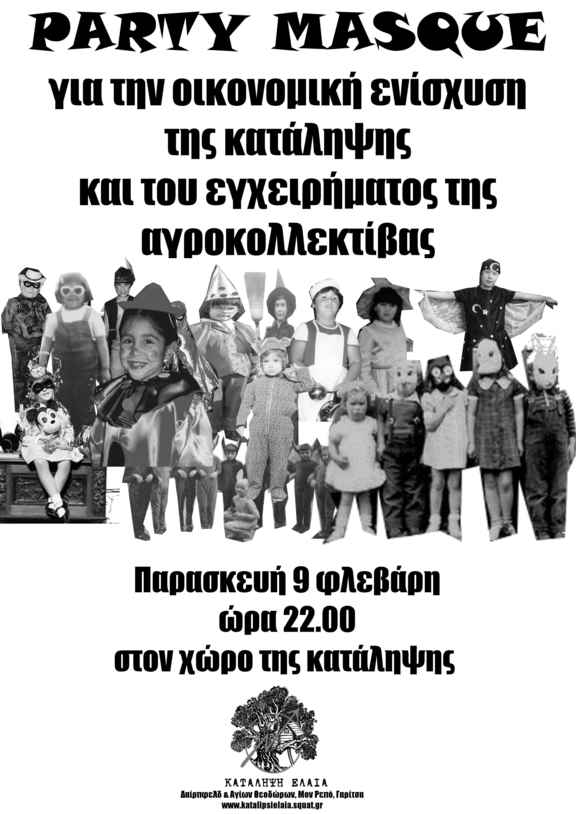 Πάρτι μασκέ για την οικονομική ενίσχυση της κατάληψης Ελαία και του εγχειρήματος της Αγροκολεκτίβας.