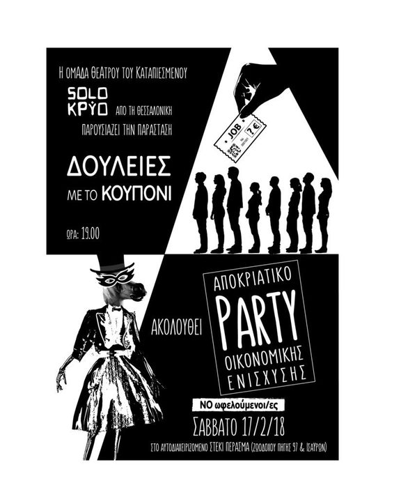 Η ομάδα Θεάτρου του Καταπιεσμένου Solo Κρύο, απο τη Θεσσαλονίκη, παρουσιαζει την παρασταση "Δουλειές με το Κουπόνι".