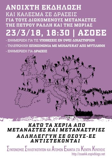 Ανοιχτή εκδήλωση και κάλεσμα σε δράσεις για τους διωκόμενους μετανάστες της Πέτρου Ράλλη και της Μόριας