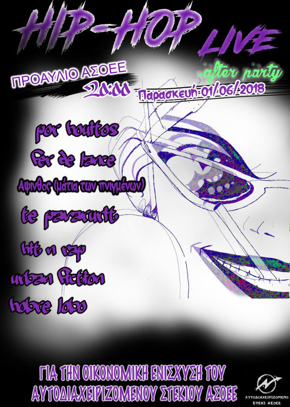 Hip-hop live & after party οικονομικής ενίσχυσης του αυτοδιαχειριζόμενου στεκιού ΑΣΟΕΕ