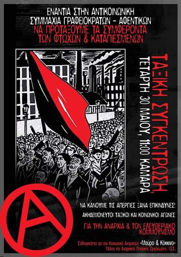 Η Καλεσμένη απεργία στις 30 Μάη από ΓΣΕΕ-ΑΔΕΔΥ καθώς και από την ''κοινωνική συμμαχία'' δηλαδή μια ξεκάθαρη συμμαχία με τα αφεντικά, δεν είναι για εμάς τίποτα άλλο παρά μια επίθεση στην εργατική τάξη. Η ΓΣΕΕ-ΑΔΕΔΥ έχοντας την πρωτοκαθεδρία στους χώρους εργασίας, ελλείψει ισχυρών αυτοοργανωμένων επαναστατικών σωματείων βάσης, αποτελούν τον κύριο εκφραστή-διαχειριστή των εργασιακών κεκτημένων και δικαιωμάτων. Δε μπορούμε παρά να εναντιωθούμε στο ενδοσυστημικό ρόλο τους, ο οποίος δεν είναι άλλος απ' το να διατηρούν την πολυπόθητη για τα αφεντικά κοινωνική ειρήνη, διοργανώνοντας απεργίες που αδυνατούν να πάρουν ριζοσπαστικό επαναστατικό χαρακτήρα και να αποτελέσουν πραγματική απειλή.